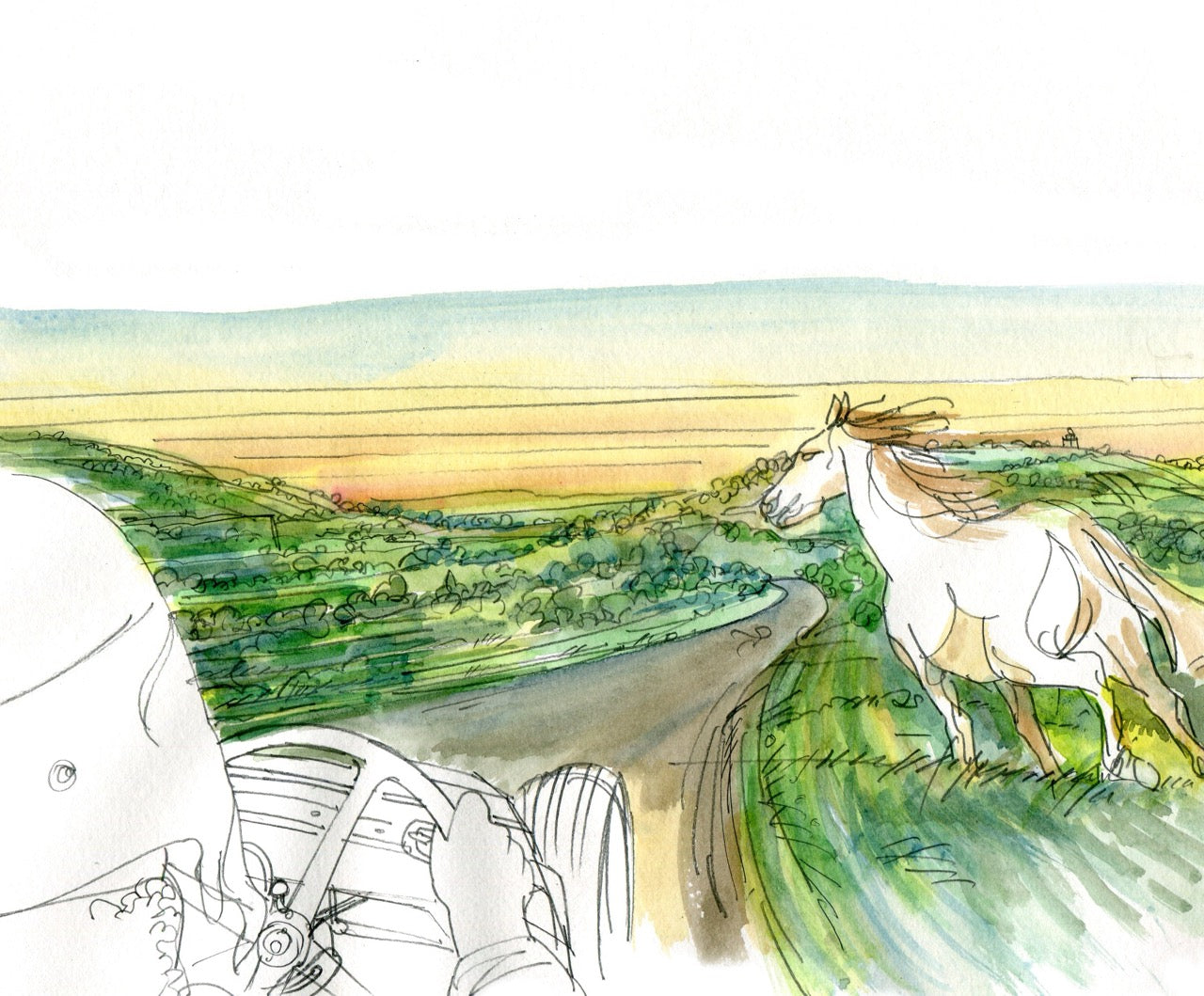Passionate globe-trotter and experienced notebook artist, Alain Bouldouyre has travelled around the world several times and has been drawing and painting it relentlessly since the 1970s. After publishing numerous stories, notebooks and even travel guides, he now collaborates with Voyageurs du Monde and Déserts du Monde, as well as illustrates the fine collection of Dictionnaires amoureux published by Plon. His meeting with Memo Paris was an obvious choice, and he has notably sketched the world of Irish Leather, the Irish countryside and the ardour of horses, in a lively and invigorating watercolour technique.