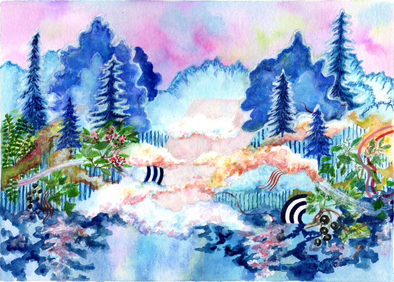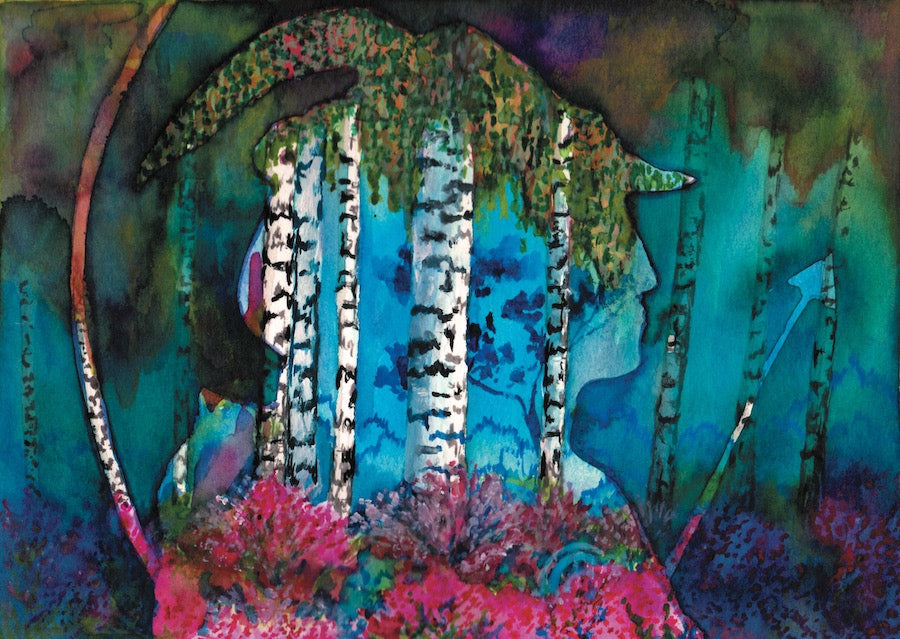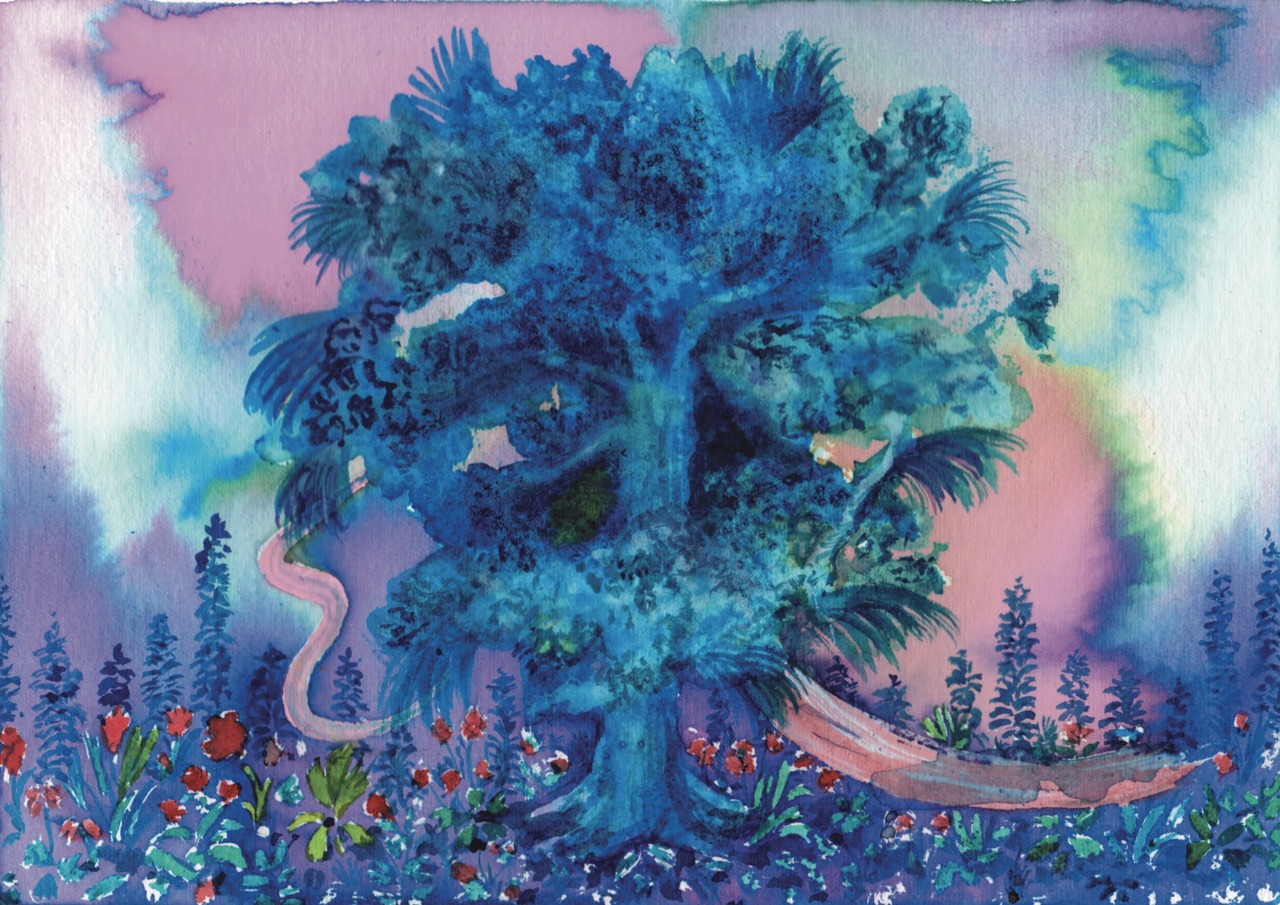 Born in 1985, she lives and works between her studio in Paris and Fouesnant, in Brittany. She studied at the École Européenne Supérieure d'Art de Bretagne (Quimper site) and at the Staatliche Akademie der Bildenden Künste in Karlsruhe, Germany. Her paintings feature abundant landscapes, inhabited by whimsical characters and animals, where colour is a heroine to the full.