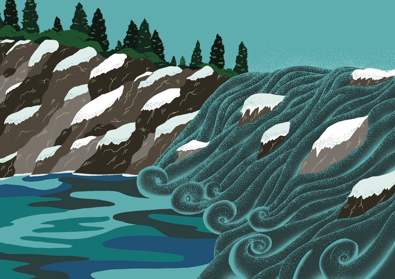 This young graduate of ESAG Penninghen in 2015, was able to deploy a universe mixing with her colour patching  talent and a line always well felt, where each detail counts. Perfect for reflecting on the strength of a landscape like that of Flåm perfume, a small fishing port in Norway, to which she has giveń a powdery warmth of snow, following the path of a train travelling through the fjord.